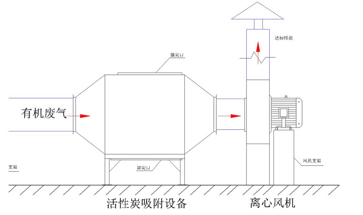有機(jī)廢氣氣體由風(fēng)機(jī)提供動力,正壓或負(fù)壓進(jìn)入活性發(fā)吸附箱內(nèi),由于活性炭固體表面上存在著未平衡和未飽和的分子引力或化學(xué)健力,因此當(dāng)此固體表面與氣體接觸時,就能吸引氣體分子,使其濃聚并保持在固體表面,污染物質(zhì)從而被吸附,廢氣經(jīng)過濾器后,進(jìn)入設(shè)備排塵系統(tǒng),凈化氣體高空達(dá)標(biāo)排放。