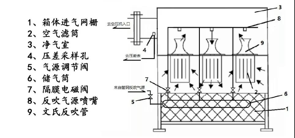 3、本設(shè)備可實(shí)現(xiàn)空氣過(guò)濾元件的自動(dòng)清潔,使設(shè)備照常運(yùn)行,而不影響其他過(guò)濾元件正常工作。